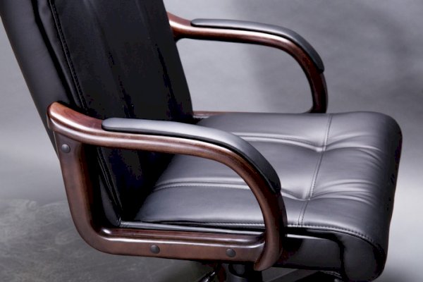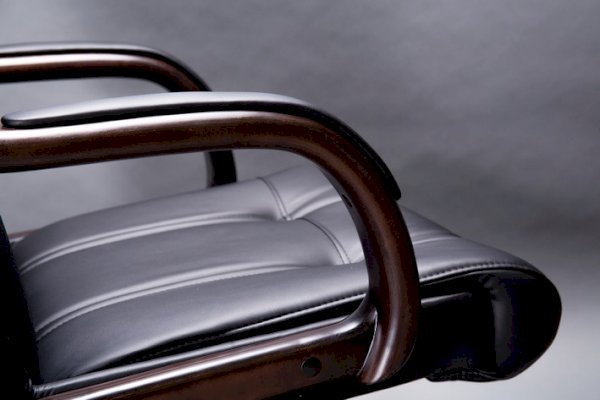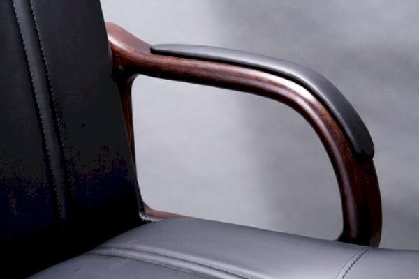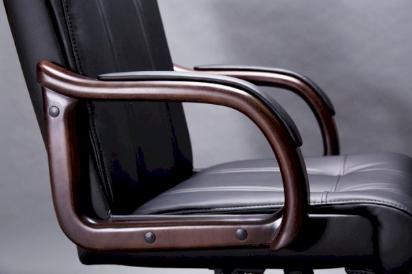 Кресло с высокой спинкой, с подлокотниками прямоугольной замкнутой формы с мягкими накладками обитыми в цвет кресла.
