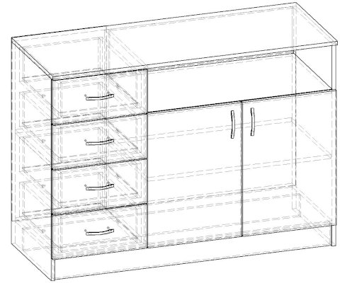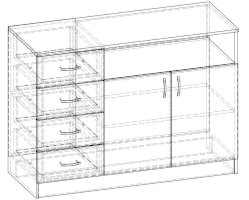 • Корпус, полки и фасады изготовлены из ЛДСП 16 мм с кромкой ПВХ 0,4 мм.