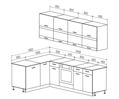 | Глубина нижних шкафов, мм | 600 / 445 |
