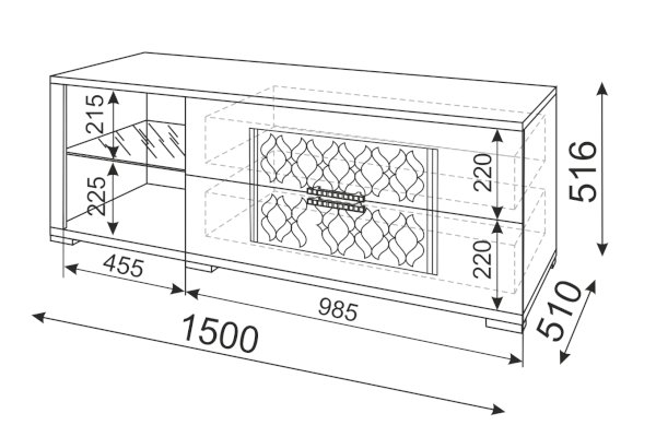 | Длина ниши под телевизор, см | 150 |