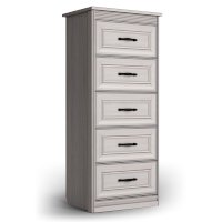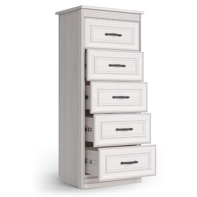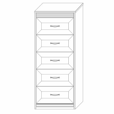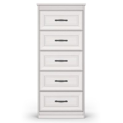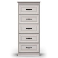 Комод высокий - это вместительный модуль для хранения вещей и аксессуаров. В его конструкции предусмотрены 5 выдвижных ящиков на шариковых направляющих с механизмом полного выдвижения. Столешница предмета мебели может служить для размещения различных красивых предметов, картин или семейных фото. Таким образом, применение данного модуля в спальне позволит не только заполнить пространство, хранить вещи, но и украсит интерьер вашей комнаты.