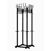 Вешалка выполнена из оцинкованной стали с полимерным покрытием. Крючки вешалки выполнены из трубы диаметром 10 мм. Вешалка поставляется в разобранном виде, в картонной таре. Эта модель вешалки может использоваться как фрагмент для обустройства гардеробных комнат.