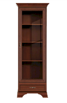 1 распашная дверь со стеклянной вставкой и 1 выдвижной ящик на металлических роликовых направляющих.