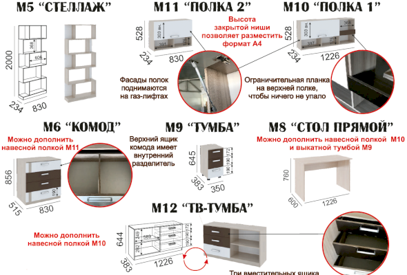 - Фасады навесных модулей оборудованы газлифтами с фиксацией в открытом виде.