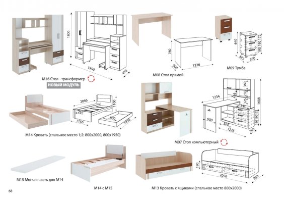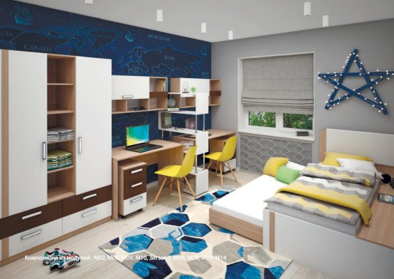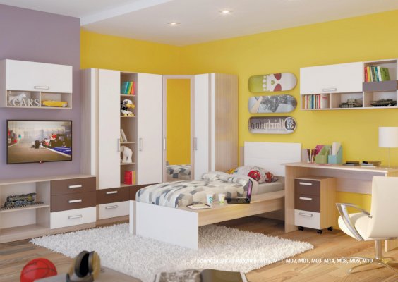- Есть модули для функционального обустройства комнаты двоих детей.