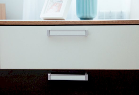 - Фасады обрамлены цветной кромкой Ясень шимо светлый.