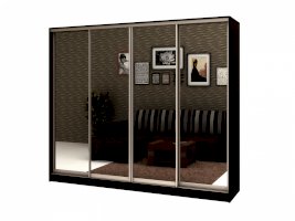 корпус - Венге Цаво, фасады - зеркало, рамка двери и треки - Серебро матовое.