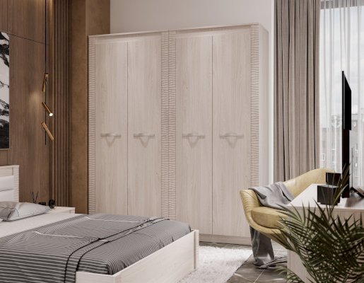Двухстворчатый шкаф Монако относится к одноименной модульной серии. Модель не имеет вычурного декора и лишних деталей, выполнена в сдержанном и лаконичном стиле. Комплектация шкафа представляет собой ниши для хранения вещей в сложенном виде, а также отделение с хромированной штангой для одежды на вешалках. Для создания модели используется качественная ЛДСП цвета белого ясеня. Створки дополнены изящными ручками.
