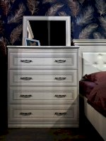 В комоде вам доступны четыре выдвижных ящика на шариковых направляющих с механизмом полного выдвижения. Такая конструкция позволяет структурировать и упорядочить хранение. А отдельным бонусом применения такого предмета в интерьере является возможность украсить пространство, расположив на столешнице вазу, статуэтку или красивый светильник.
