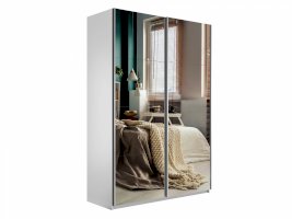 Шкаф-купе 2-х дверный Прайм Зеркало/Зеркало 1400х2300х570 мм Белый снег