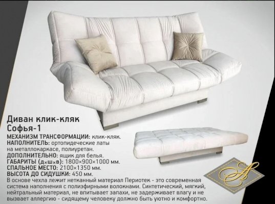 Клик Кляк Софья-1 (Асмана) - за 51 682 руб. в Донецке. Купите на сайте doneck.onlinemarketmebeli.ru или по телефону 8(800)505-30-63 уже сегодня! Уточнить наличие, комплектацию, актуальную цену можно бесплатно у менеджера ежедневно. Закажите Клик Кляк Софья-1 (Асмана) до конца акции! Доступна покупка в кредит, рассрочку. Доставим со склада или на заказ.