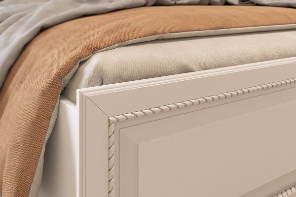 Кровать оснащена ортопедическим основанием, которое обеспечит здоровый и крепкий сон. Спинки кровати украшены объемным декоративным элементом и фрезеровкой с патиной. Матрас приобретается отдельно.