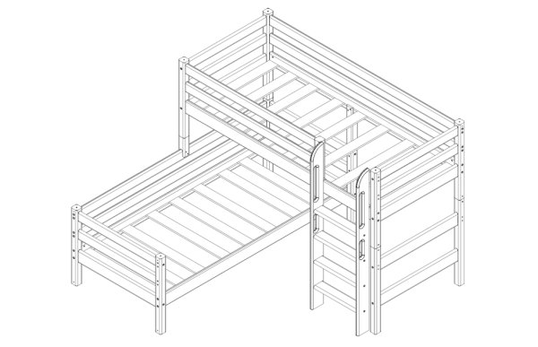 В состав варианта входит: Пакет № 1 базовый, кол-во 2 шт. Пакет № 2 латы, кол-во 2 шт. Пакет № 3 задняя защита от падения, кол-во 4 шт. Пакет № 4 передняя защита 1/4, кол-во 1 шт. Пакет № 7 прямая лестница ля полувысокой кровати, кол-во 1 шт. Пакет № 9 опоры для угловой кровати, кол-во 1 шт.