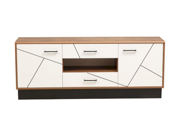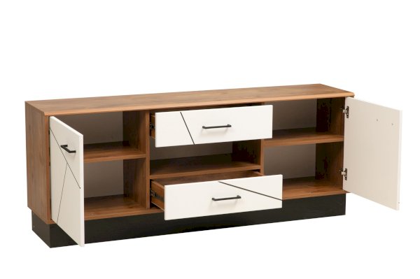 Тумба позиционируется как основа под ТВ, но ее функционал гораздо шире. Здесь можно разместить все, что угодно. На столешнице – любую технику. В ящиках и на полках – сопутствующие технике предметы, документы и просто то, что считаете нужным.  Отлично смотрится в дуэте с навесной полкой 54.09. У них одинаковые размеры (1600 мм по ширине), поэтому они очень гармоничны в ансамбле и выглядят, как единое целое.