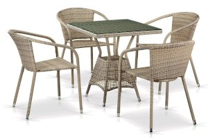 Комплект из искусственного ротанга цвета латте на 4 персоны. В комплекте - стол и 4 стула. Подойдет для дачи и летнего кафе.