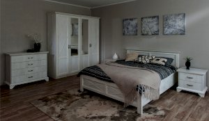 Тумба с фасадами цвета «Бетон пайн» с фактурой и рисунком натурального дерева добавят помещению света и сделают ее воздушней. Металлические ручки цвета состаренного серебра придают изысканность, а фигурные ножки и декоративный профиль крышки подчеркивают стилистику коллекции. Ящики на телескопических направляющих поместят в себя все необходимые предметы, которые важно иметь под рукой - телефон, очки, светильник или любимая книга. Мебель выполнена из экологичных материалов.
