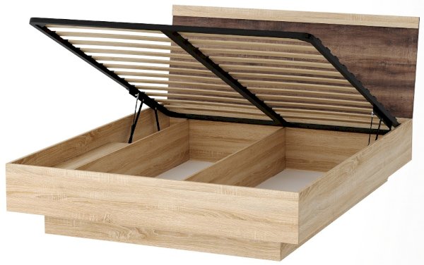 Кровать с ортопедическим основанием и подъемным механизмом Соната КРС-1600 Дуб Сонома/Белый глянец