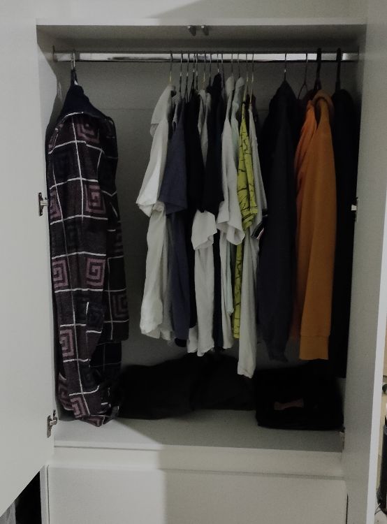 за свою цену не плохой шкаф, вместительный ,с полками, в коплекте есть штанга. Ему бы нормальные направляющие и совсем отличный бы был.
