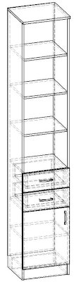 Стеллаж 1 дверь 2 ящика Горизонт (Баронс)
