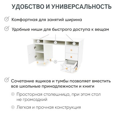 • Конструкция стола отвечает всем требованиям ГОСТ