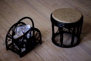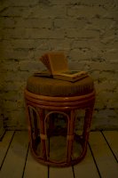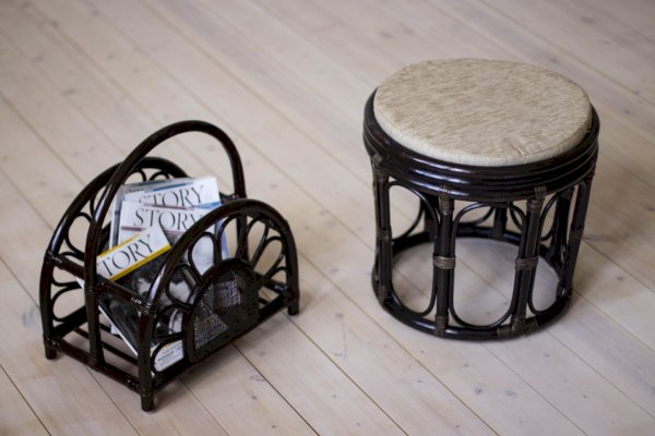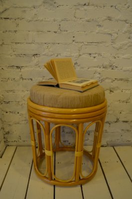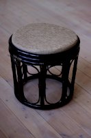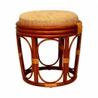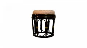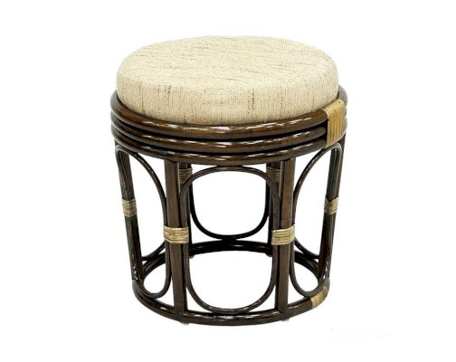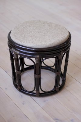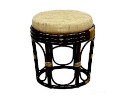 Темно-коричневый Табурет из ротанга с мягким сиденьем.