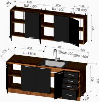 Габариты кухни 2000 мм (ШхВхГ):