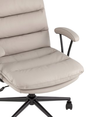 Офисное кресло в мягкой и удобной обивке из экокожи. Удобная спинка оказывает качественную поддержку и позволяет провести в кресле долгое время без усталости. Благодаря механизму регулировки высоты можно выбрать удобное положение. Металлический каркас выдерживает нагрузку до 150 кг.