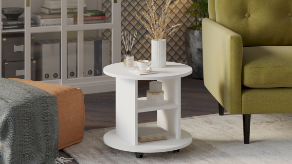 Наша новинка подарит Вам возможность сделать пребывание в гостиной более комфортным и уютным. Мобильность является очень важным показателем при выборе журнального стола. Классический функционал журнального столика дополнен роликовыми опорами, позволяющими при необходимости передвинуть его в любое место. Круглая столешница абсолютно безопасна и придаёт столу необычный вид, а также добавляет практичности.