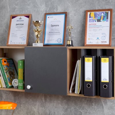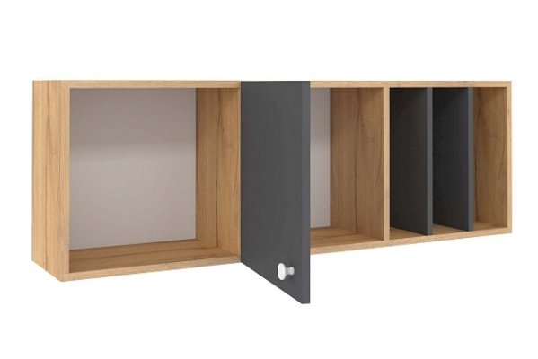 Навесной шкафчик с открытыми и закрытыми нишами, полками - удобный способ настенного хранения самых разных вещей. Универсальный модуль ЛОЙС 88 можно навесить на уголки как горизонтально, так и вертикально. В вертикальном положении рекомендуем использовать шкаф как функциональную надстройку для тетрадей и учебников.