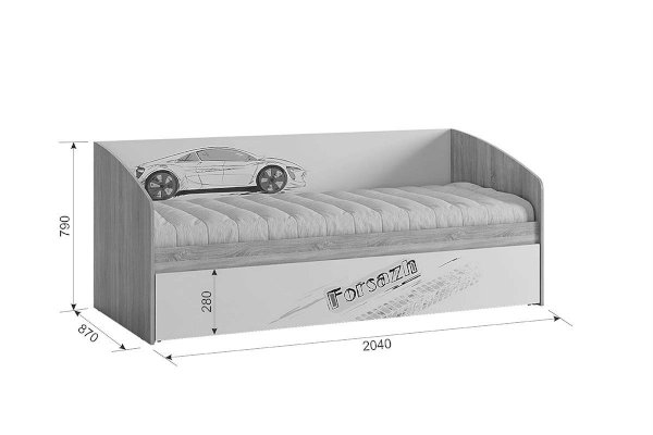 Дополнительное удобное спальное место или большой выдвижной ящик для хранения постельного белья и игрушек, на выбор, решать вам. Стильный принтерный рисунок на фасаде. Детская «Форсаж» - это стильная, современная детская, которая понравится каждому ребенку. Рисунок устойчив к истиранию и ультрафиолету.