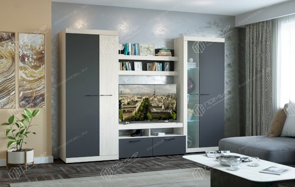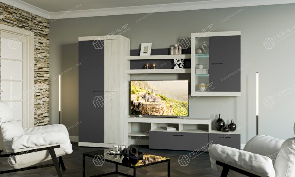 Модульная гостиная Дуб Крафт белый/Антрацит Соната (Памир)