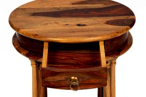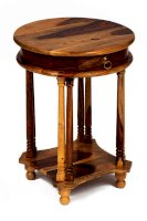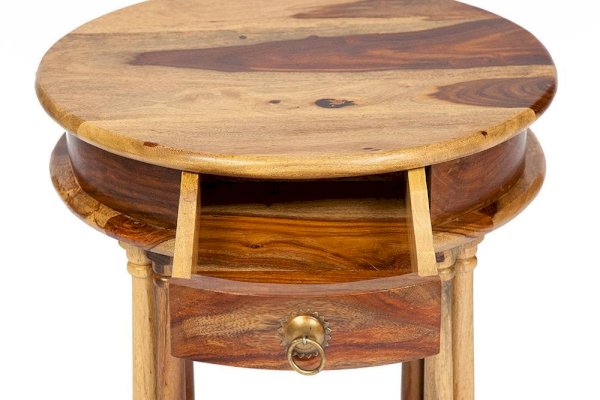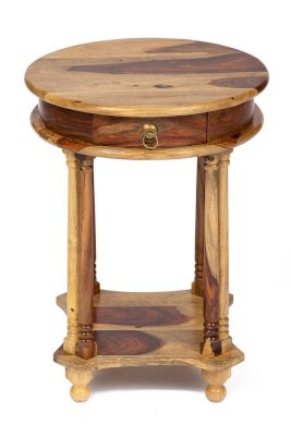 Кофейный стол из коллекции BOMBAY – это не просто функциональное решение, но и яркая деталь, способная подчеркнуть индивидуальность вашего интерьера. Его круглая форма и элегантный дизайн помогут создать гармоничное пространство и невероятный уют, в которые захочется вернуться еще не раз. Оригинальные резные ножки ручной работы, классическая форма с нижней полочкой и винтажная фурнитура из патинированной латуни подчеркивают красоту и благородство изделия. Небольшой выдвижной ящик станет удобным местом хранения различных мелочей. Столик можно использовать как по прямому назначению, так и в качестве дополнительной сервировочной поверхности. Натуральная древесина палисандра, обработанная прозрачным лаком, зачаровывает благородством рисунка, изысканностью материала и красотой. Модель долговечна, прочна, надежна и не требует специального ухода. Столик отлично гармонирует с мебелью из коллекции BOMBAY, поставляется в собранном виде.