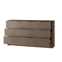 Комод «Эмилия» (КМ-04) – это идеальная альтернатива шкафу для спальни. Эта модель поможет уместить все постельное белье в одном месте, сэкономит пространство и сделает интерьер оригинальнее. Шесть просторных ящиков и небольшая высота – два основных преимущества комода «Эмилия».