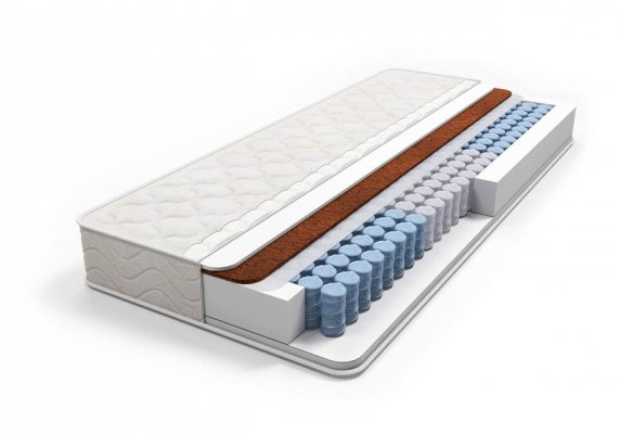 Состав: Высокоэластичная пена Foam Независимый пружинный блок Pocket Кокосовая койра Высокоэластичная пена Foam Усиление по периметру матраса