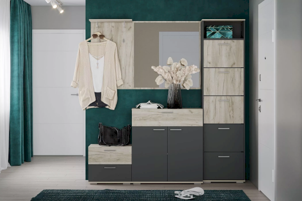 Зеркало из коллекции Санти легко впишется в интерьер прихожей. Легкий и лаконичный дизайн без излишеств придаст вашей прихожей современный вид. Зеркало представлено в двух цветах на выбор – Антрацит/Дуб Крафт Серый и Белый Фасадный/Дуб Крафт Золотой. Дополните зеркало тумбой и шкафом для одежды из одноименной коллекции, чтобы оптимизировать место хранения в прихожей и создать особо гармоничную атмосферу!