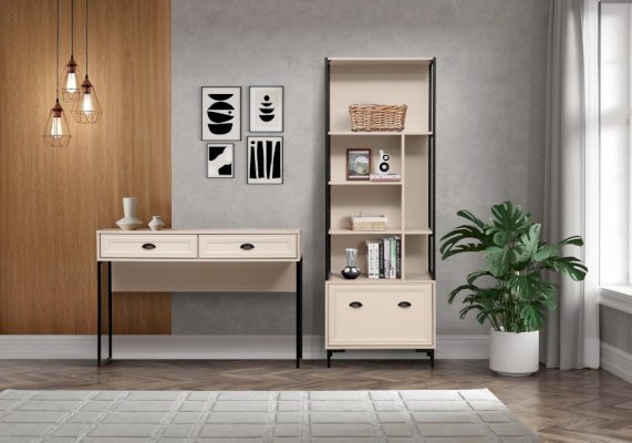 Туалетный стол –  неотъемлемая часть спальни или женской комнаты. Каждая девочка, девушка или дама хочет иметь собственное пространство, свой уголок красоты, для того чтобы привести себя в порядок, нанести макияж, а затем покрасоваться, удобно и компактно расставить свою косметику и парфюмерию, аккуратно сложить украшения и аксессуары. Это красивый и практичный атрибут мебели. Он может послужить и как место для комфортного чтения вашей любимой книги. Корпус стола выполнен из ЛДСП и металлического профиля. Металлическая ручка-ракушка с матовой поверхностью проста в установке, надежна и удобна в использовании, и к тому же, имеет прекрасный внешний вид. Фасады вкладные с рамочным профилем собственного производства.