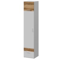 Сверху антресоль, открывается вверх на газлифте. Внутри четыре полки. Внизу два ящика (один большой, второй маленький (по ширине цветной вставки, без ручки). Направляющие НПВ шариковые.