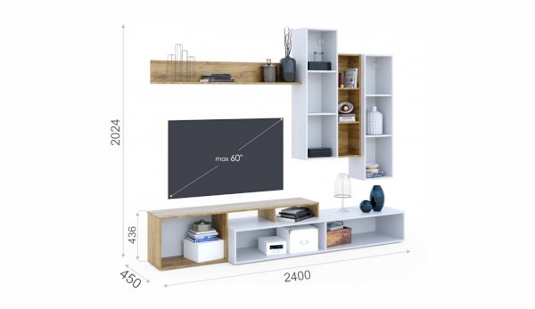 • ТВ-тумба рассчитана на диагональ телевизора до 60 дюймов