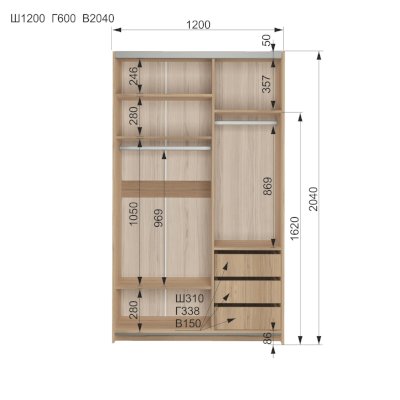 Размер (ШхГхВ): 1200 x 600 x 2040 мм