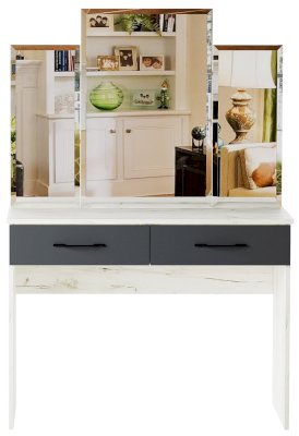 Столик туалетный с 2-мя ящиками на роликовых направляющих. Зеркала выполнены с изящной и красивой обработкой "фацет" по периметру.