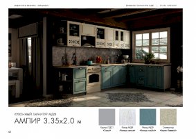 Хотите готовить и проводить время на кухне с удовольствием? Укомплектуйте помещение красивой и удобной мебелью — закажите гарнитур «Ампир»! Комплект эстетичен и функционален. В него входят все необходимые для создания идеальных условий элементы. Холодные оттенки поддерживают праздничное, романтическое настроение. Немного гламура в обстановку вносят прорезные орнаменты на дверцах подвесных шкафчиков.