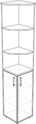 Шкаф идеально подходит для завершения модельного ряда как с левой так и с правой стороны. В верхней части шкафа находится секция с полками, в нижней полки за закрытыми фасадами. Может быть использован как дополнительный модуль ПР-7 или как самостоятельное изделие.