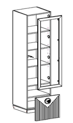 • конструкция модуля предполагает возможность закрытого и открытого хранения, за стеклодверью предусмотрены три полки, где можно поместить красивые сувениры, книги и фото, а в нижней части закрытое отделение с дверкой;