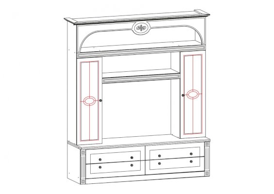 Гостиная «Джулия» — эталон хорошего вкуса и подтверждение материального благополучия владельцев жилья. Благородные оттенки натуральной древесины олицетворяют надежность и стабильность. Элегантный декор производит приятное впечатление. Замкнутые в овалы орнаменты создают иллюзию антикварности. Выразительность и оригинальность придают модели вставки из матового стекла, а также отделка шкафов и ящиков под резьбу.