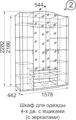 Четырехдверный шкаф для одежды с зеркалом Виктория 2 (Ижмебель)