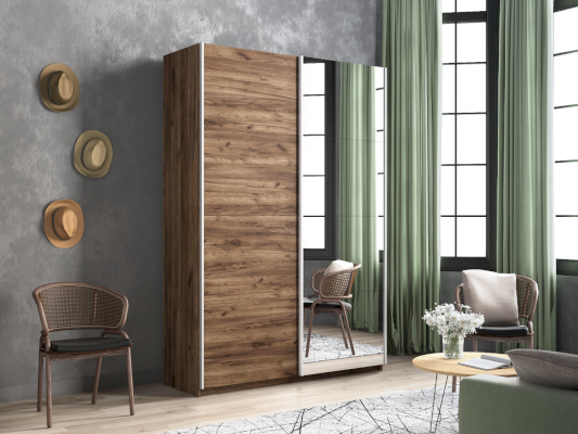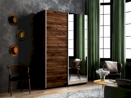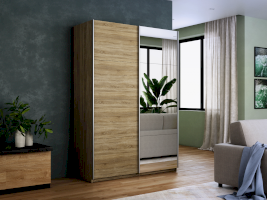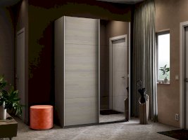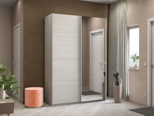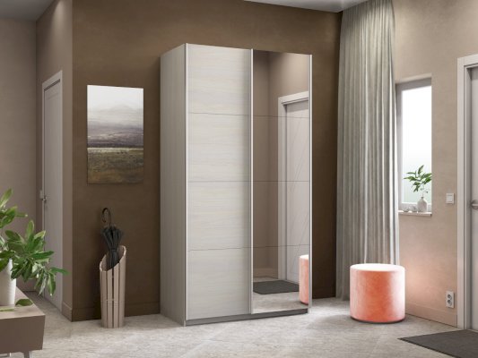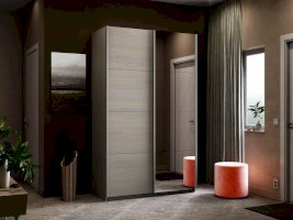 Серия «Прайм» отличается доступностью и функциональностью Навесные двери и лаконичная отделка фасадов создают прогрессивный дизайн. Подойдет тем, кто любит компактную и изящную мебель. Алюминиевые ручки и верхний ходовой профиль обеспечивают легкость и прочность конструкции. Многолетняя безупречная работа благодаря высококачественной немецкой фурнитуре Hettich. Прочная ПВХ-кромка толщиной до 1 мм защищает края от сколов и повреждений. Плавный ход дверей обеспечивает надежная система Hettich Top Line M. Дополнительно можно установить доводчики. Снаружи нет заглушек и винтов благодаря стяжечной системе крепления полок на флипперах, а корпус усилен эксцентриковыми стяжками. Навесные двери скрывают раздвижной механизм от глаз. Они надежно удерживаются в направляющих и не соскакивают. Каждая дверь поделена на 4 секции Секции расставляются в произвольном порядке, создавая новый дизайн фасада.