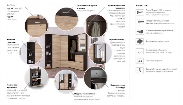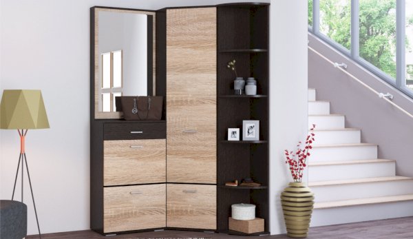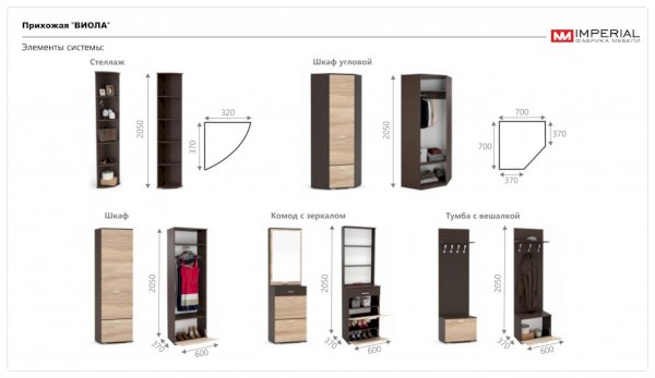Небольшая глубина шкафов прихожей "Виола" и возможность выбора модулей позволит разместить гарнитур в прихожей любых размеров. В комплект входят: удобная тумба с зеркалом, угловой шкаф и стеллаж. Сочетание актуальных цветов зрительно расширяет пространство. Немного декора, и максимум возможностей!