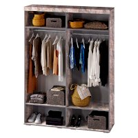 Современный четырёхстворчатый шкаф Инстайл выполнен в стиле одноименной модульной коллекции мебели. Модель состоит из четырех дверок, две из которых – зеркальные. Изделие выполнено в комбинации белого и цвета бетон. Внутреннее наполнение состоит из двух отделений со штангами, а также верхних и нижних полок для вещей. Стильный геометрические ручки украшают шкаф Инстайл.
