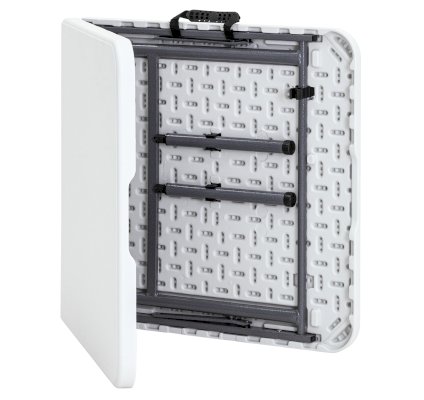 Для каркаса используется стальная труба особой прочности 25*1 мм, а столешница выполнена из 100% не переработанного полиэтилена HDPE (полиэтилен высокой плотности). Считается одним из более безопасных видов пластика. HDPE пластик выдерживает высокие нагрузки, не трескается при ударной нагрузке, эластичен в диапазоне температур от –70 до +100 °С.