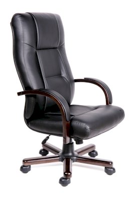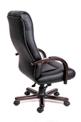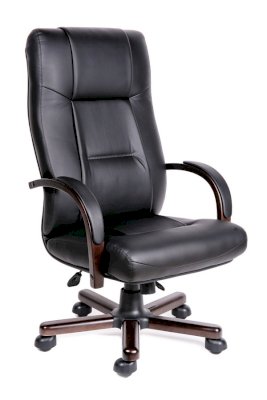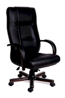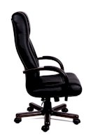 Кресло с высокой спинкой, с подлокотниками дугообразной не замкнутой формы с мягкими накладками обитыми в цвет кресла